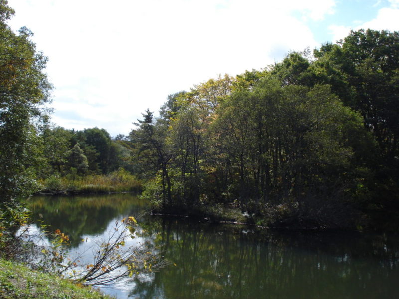 昨日、今日と 2017年10月18日 昨日、今日とよく晴れたので、紅葉の進み具合をお知らせしますね。 前回と同じ場所のうちの近くの山と、うちの沼の林です。 段々色づいてきましたよ! うちの近くの山 うちの沼の林