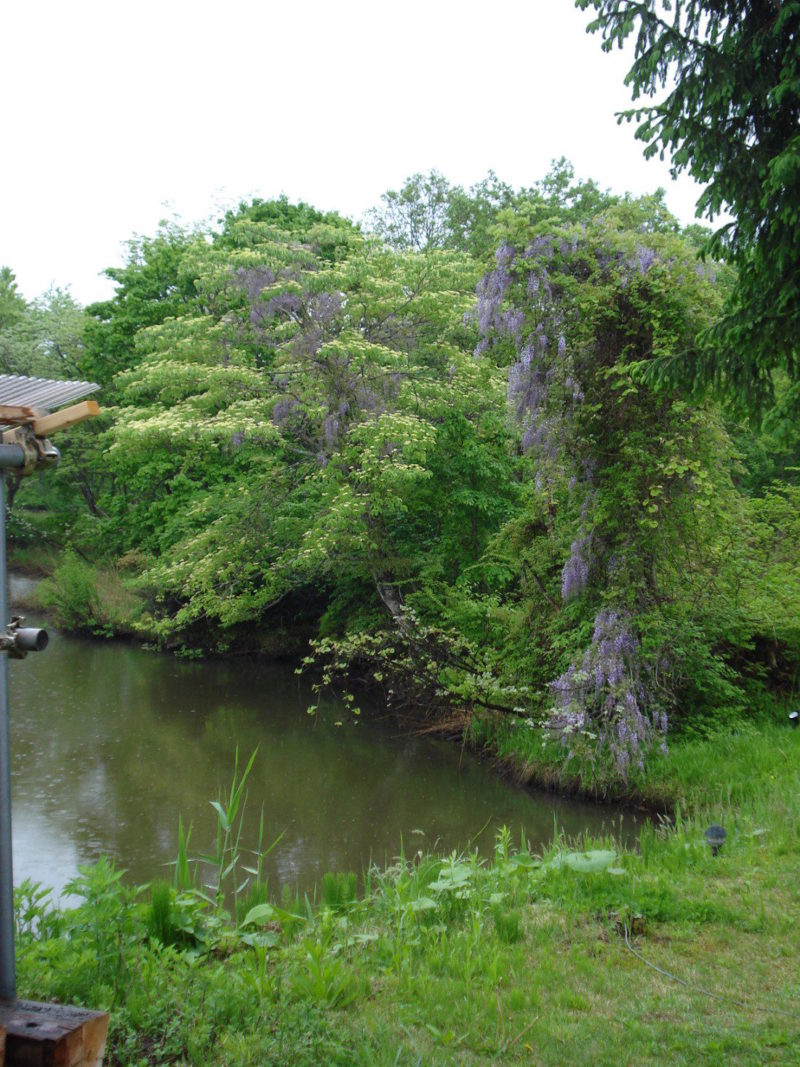 で、外に出て折れた枝の片付けをしながら、ふと沼を見たら・・・。