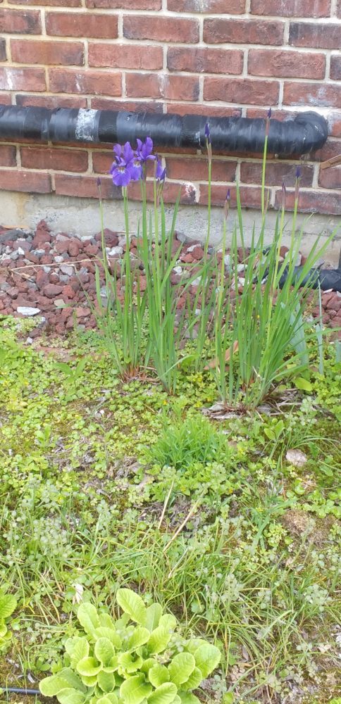 玄関先のアヤメも細いながら花が咲いています。