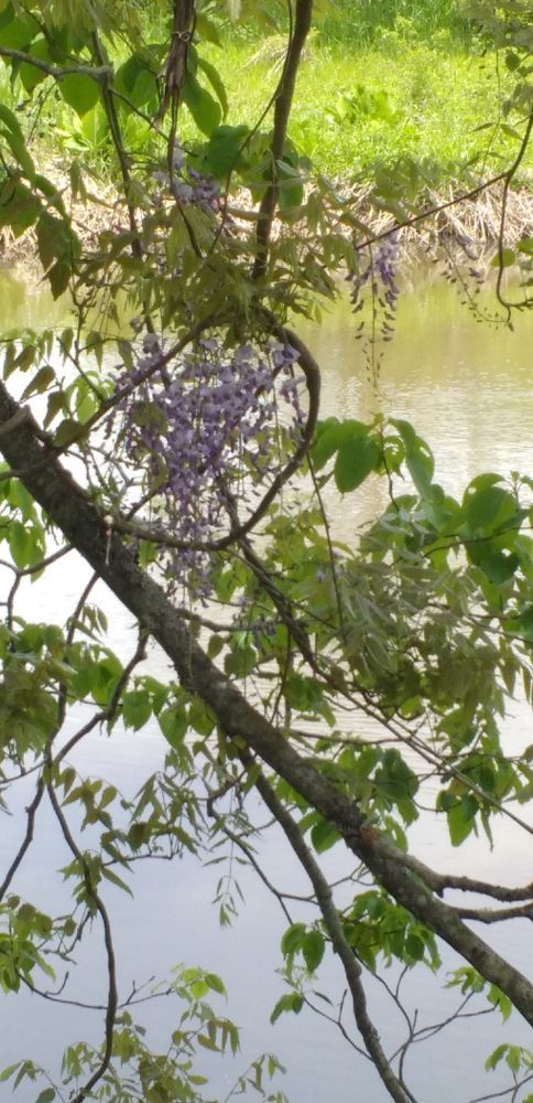 6月になり、新緑がきれいで庭の山藤の花も咲き始めました。