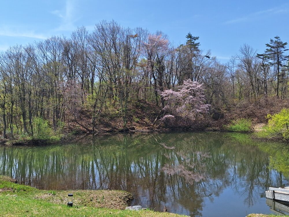 うちの沼の山桜が咲き始めました。